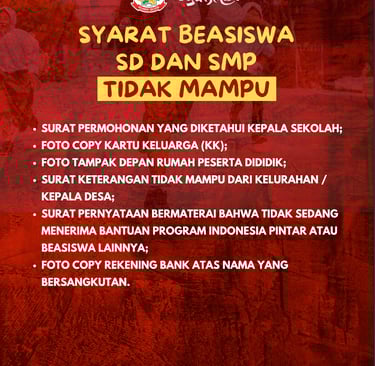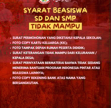 Syarat Beasiswa SD, SMP Kategori Tidak Mampu